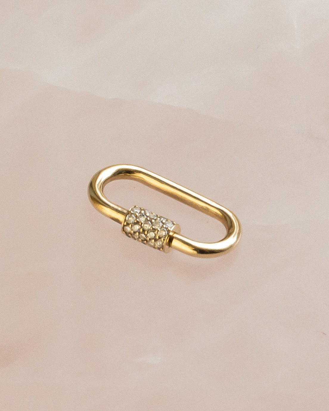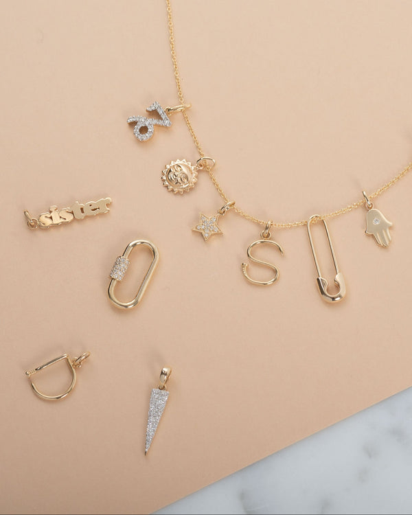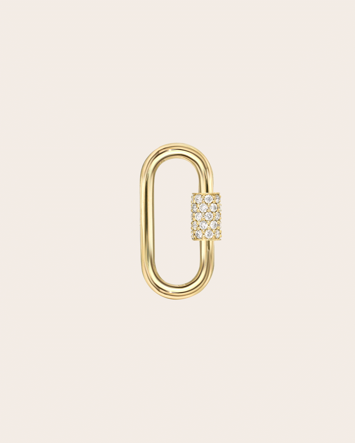Pave diamond 14k yellow gold carabiner lock charm (pendant only, does not include chain) wear it by itself or use to stack your charm collection, to create a one of a kind charm necklace.