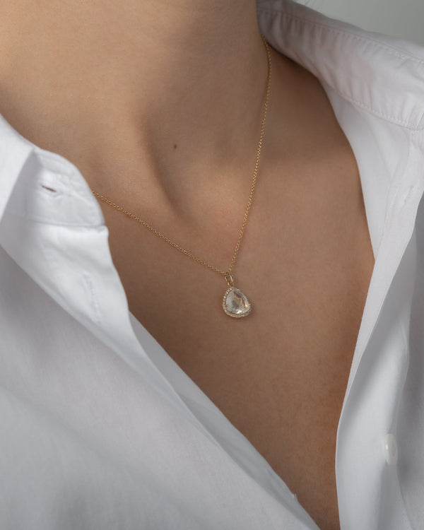 Modern and timeless diamond moonstones in a free form shape pendant available in 14k solid yellow gold. Wear it up or down, they'll be your new favorite piece. Made in L.A.