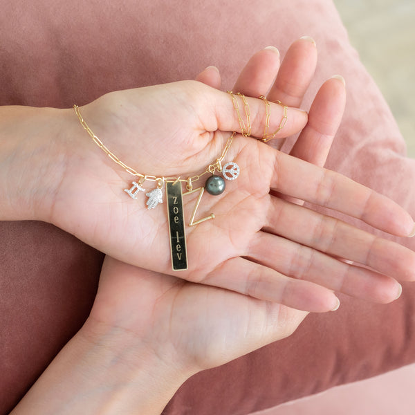Diamond peace charm in the gold color of your choice (pendant only, does not include chain) wear it by itself or stacked with the charms of your choice, for a one of a kind charm necklace.