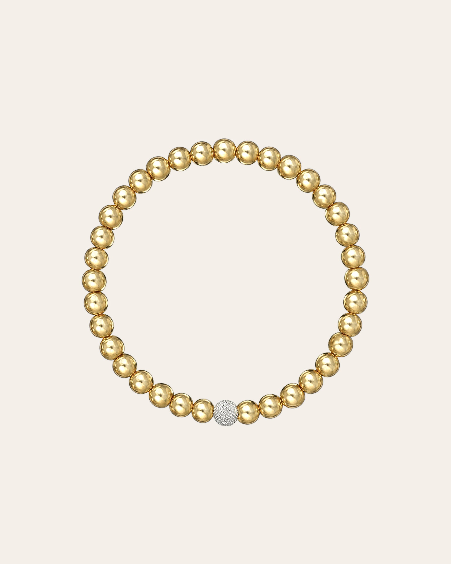 Part of our bead collection, is this fun and chic 5mm beads bracelet, dainty and hollow, with a single 14k white gold diamond bead. With an elastic stretch fit, wear it up or down by itself or stacked with your other fine and fashion bracelets for the perfect arm party.