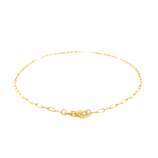 The delicate sophistication of 14K yellow gold meets the modern simplicity of paperclip anklet. Anklet has 1.5mm wide links and closes with a lobster clasp.