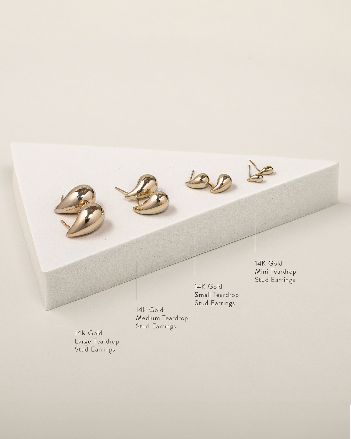 A smaller version of a popular stud, these 14K Gold Medium Teardrop Stud Earrings add a touch of luxury to any ear stack. From a strapless gown to a classic white tee, these earrings elevate your style with their curvaceous, mini bubbly design. Effortless and feminine, they are a trendy must-have for the fashion-forward woman.