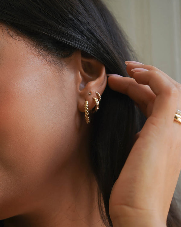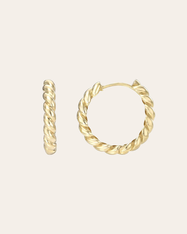 Modern and classic twist huggie earrings. 14k yellow gold uber chic! Wear them day or night, up or down.