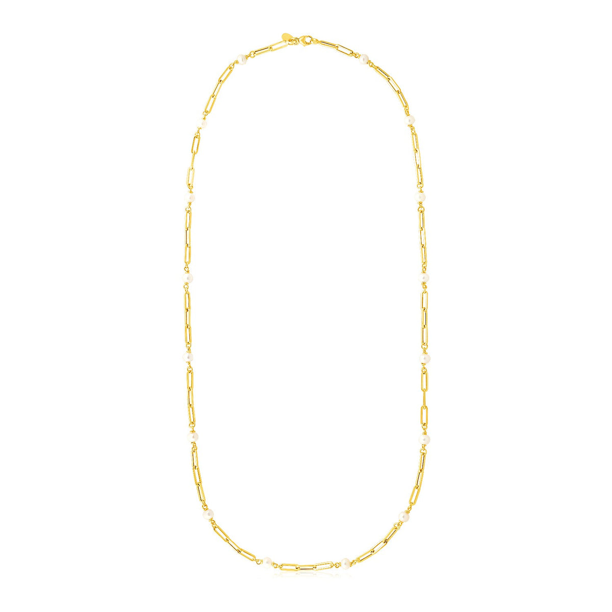 Lovely stations of freshwater pearls beautifully accent 14k yellow gold paperclip chain on this elegant necklace. Necklace is 24 inches long.