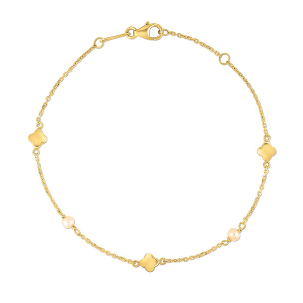 This Pearl Clover bracelet is beautifully crafted in 14k yellow gold with a high polish finish and closes with a lobster clasp. A classic spin on one of the most popular styles. Measuring 7 inches in length.