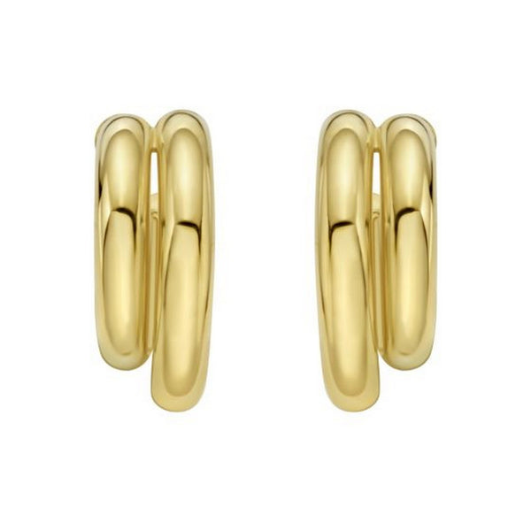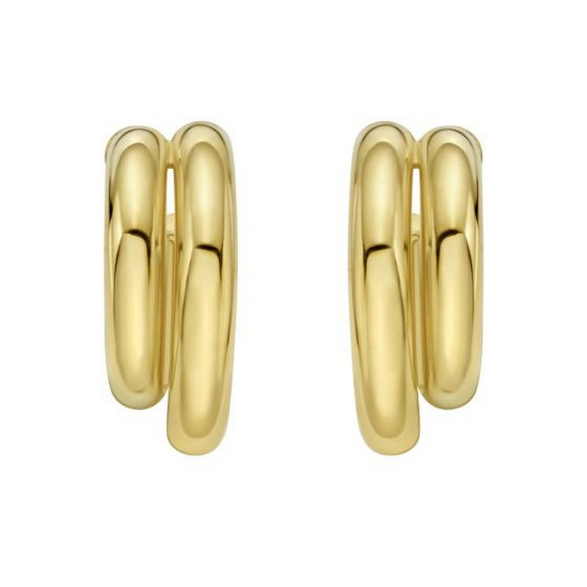 Chic sterling silver yellow gold plated double row big and small round hoop earrings featuring a polished finish and interlocking circular design. The pairing of large and small hoops adds depth and shine, creating a stylish and versatile look perfect for any occasion.