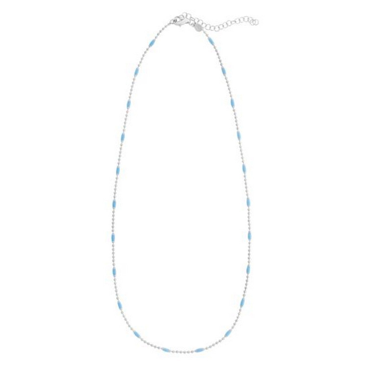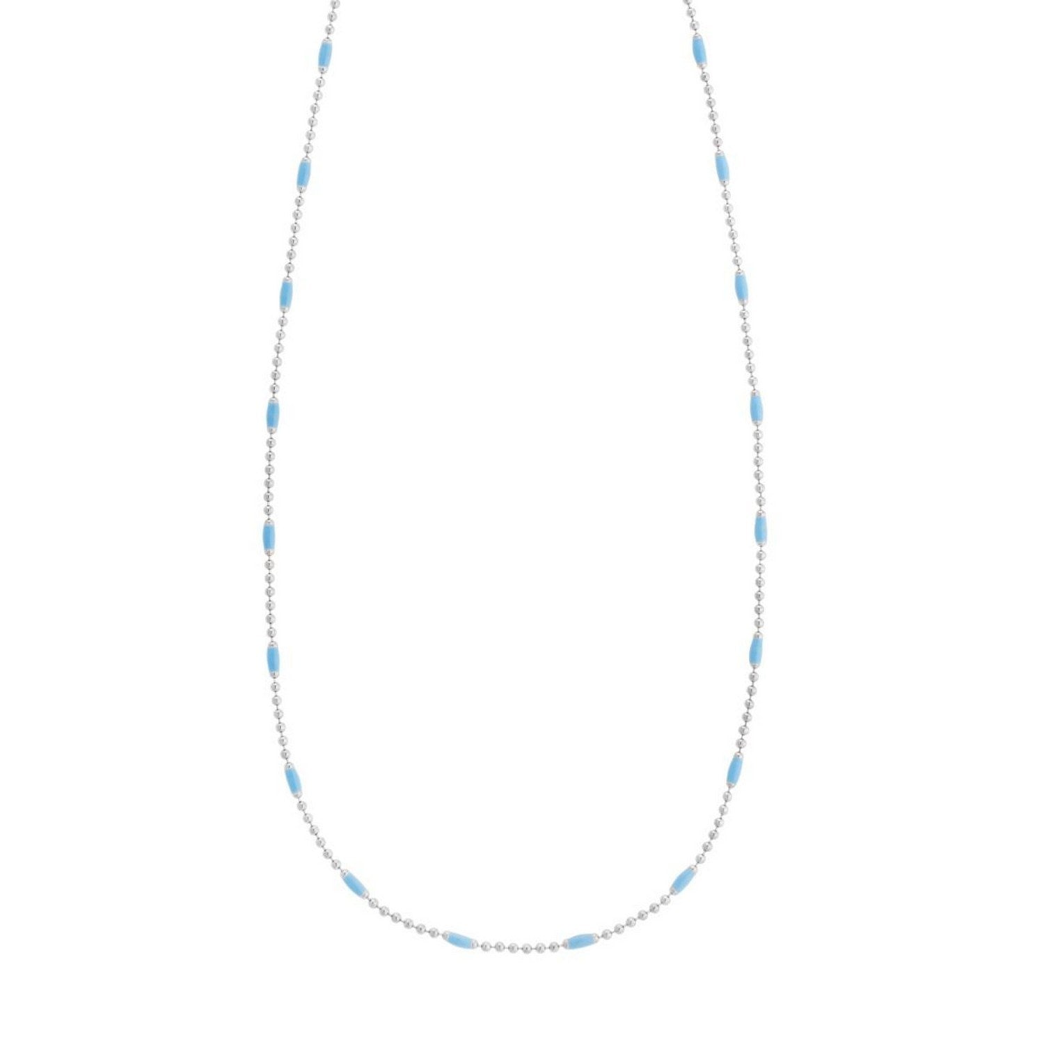 Refresh your style with this Sterling Silver Rhodium Plated Blue Enamel Beaded Necklace. Featuring glossy blue enamel beads on a sleek rhodium-plated sterling silver chain, it delivers a bright, modern pop of color. Lightweight, stylish, and perfect for everyday wear or effortless layering.