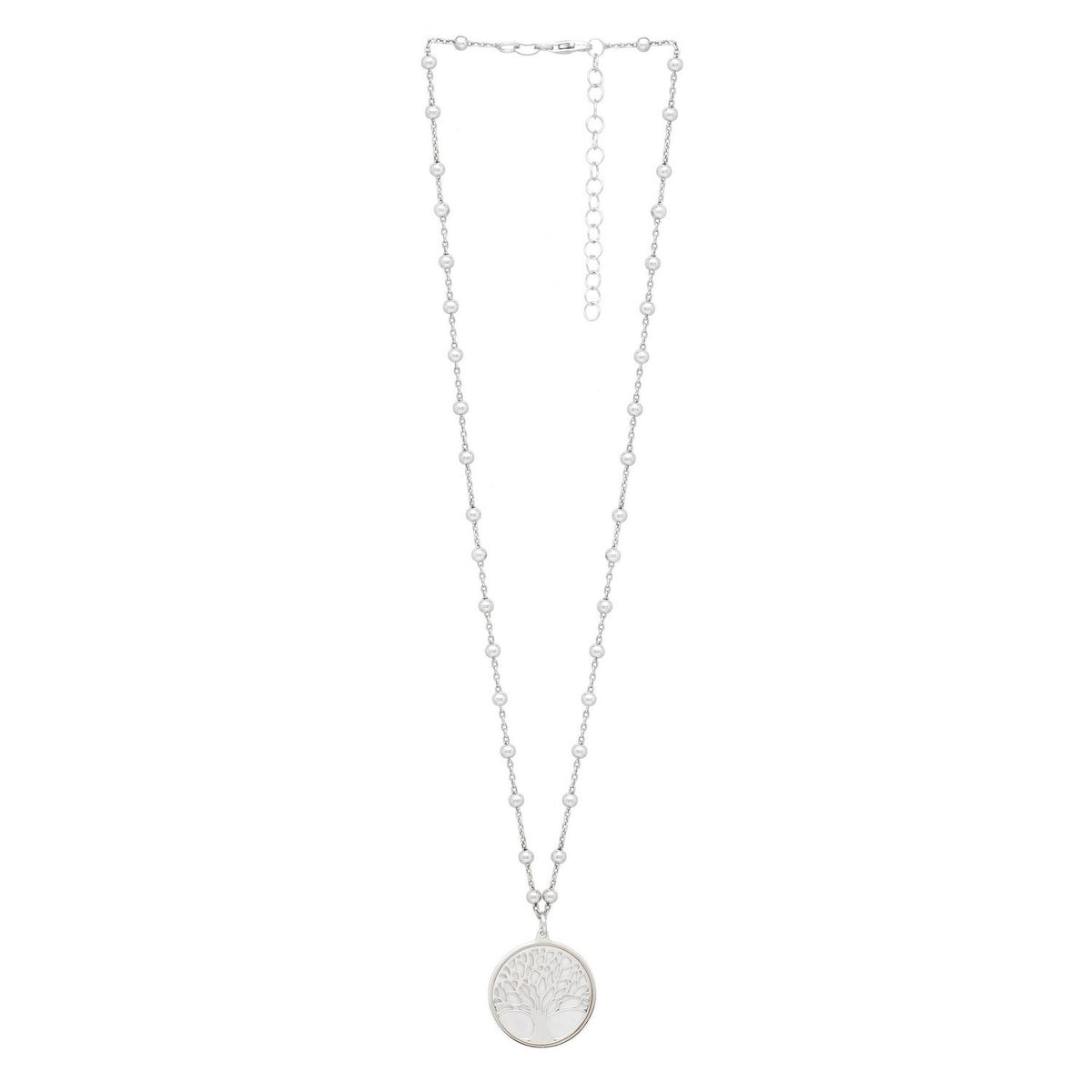 Celebrate growth and harmony with this Sterling Silver Rhodium Plated Tree of Life Pendant Necklace. Featuring a beautifully detailed tree motif on a radiant rhodium-plated chain, it offers timeless symbolism and everyday elegance. Perfect for meaningful gifting or adding a touch of inspiration to any look.