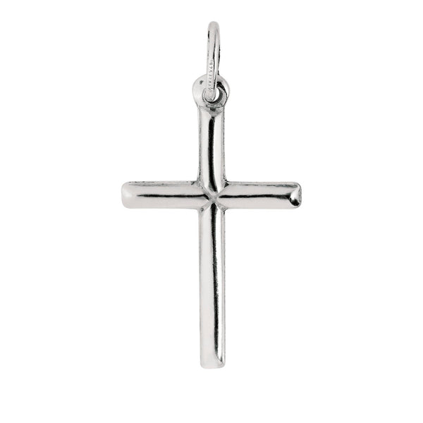 Modern and refined, this medium tube cross pendant is crafted in sterling silver and enhanced with radiant rhodium plating for a brilliant, lasting shine. Its sleek tubular design offers a contemporary twist on a classic symbol, perfect for everyday wear or meaningful gifting. Stylish, timeless, and beautifully crafted.
