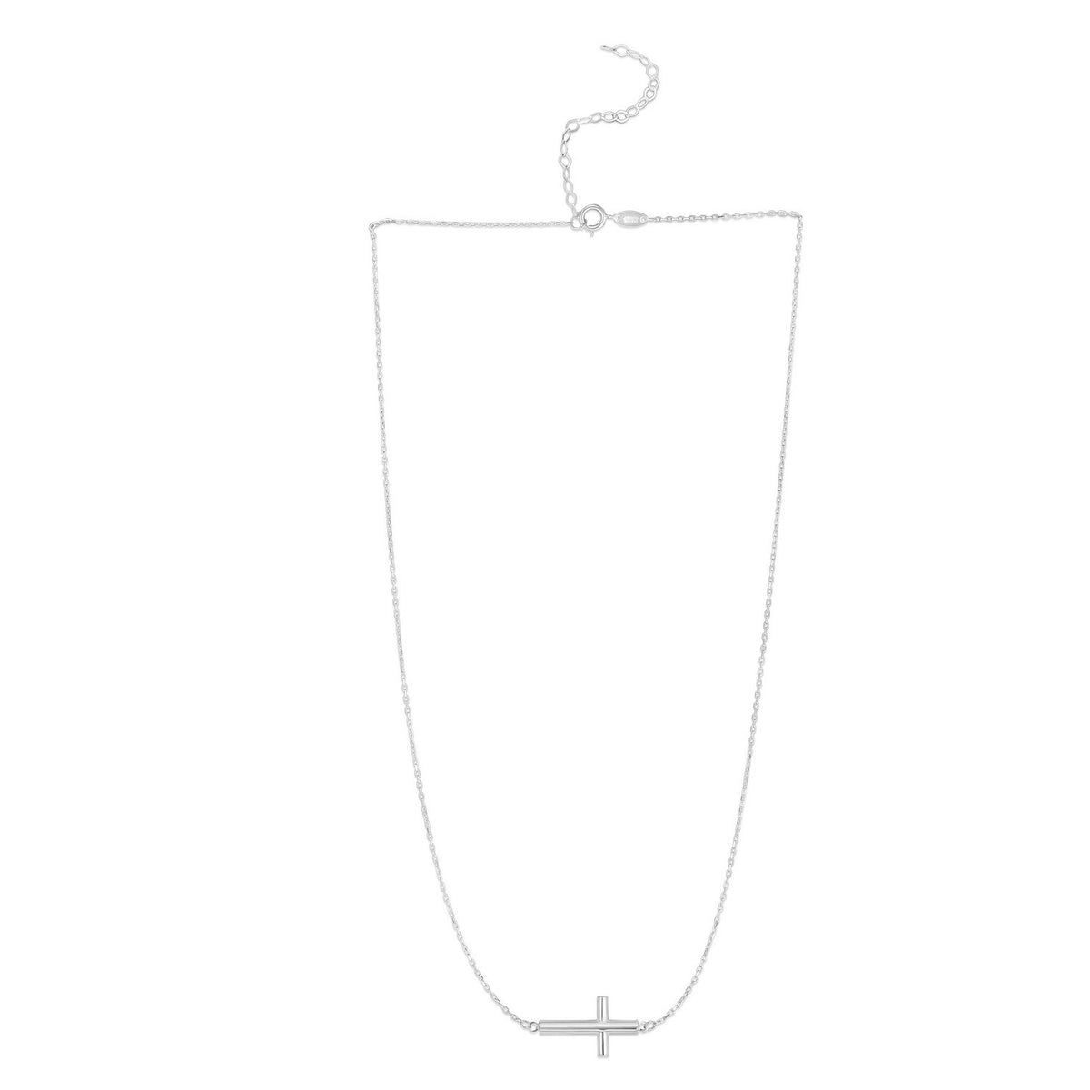 This 14K white gold sideways cross necklace features a sleek diamond-cut finish that adds radiant sparkle to its modern silhouette. Set on a delicate chain, it offers a meaningful and stylish look perfect for everyday wear, layering, or gifting.